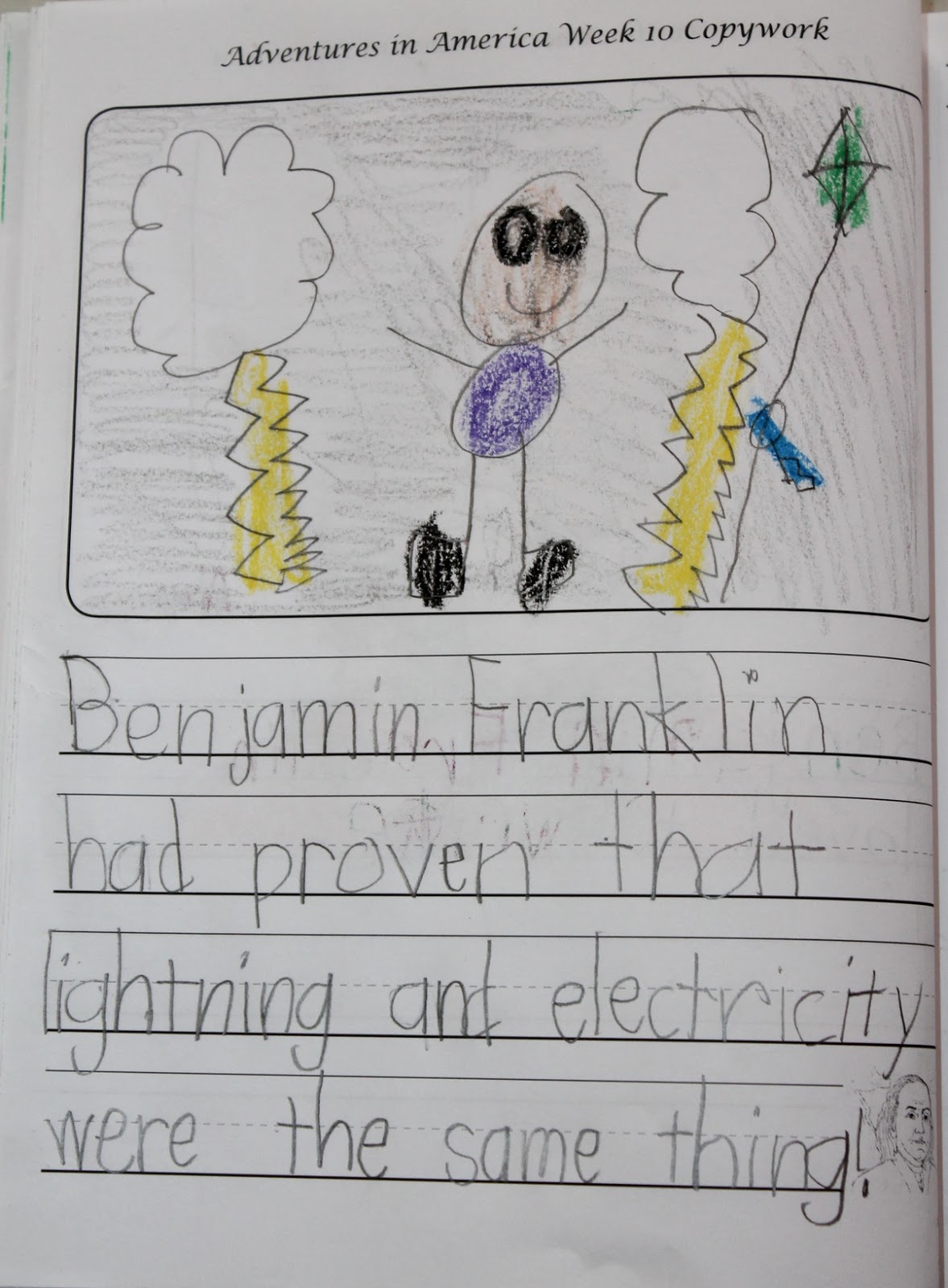 Our History lessons were on Benjamin Franklin. The boys enjoyed learning about some of the things he invented.