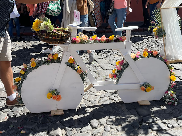 We recently hosted friends from our home State of Mississippi. I will share about their overall visit in a separate post. One of the things we did while they were here was attend the Antigua Flower Festival in our town. It was the sixth annual event and it seems to grow every year. It falls on the third weekend of November every year and was a great time to have them in town. Everything is beautifully decorated with flowers and is a spectacular sight to see.